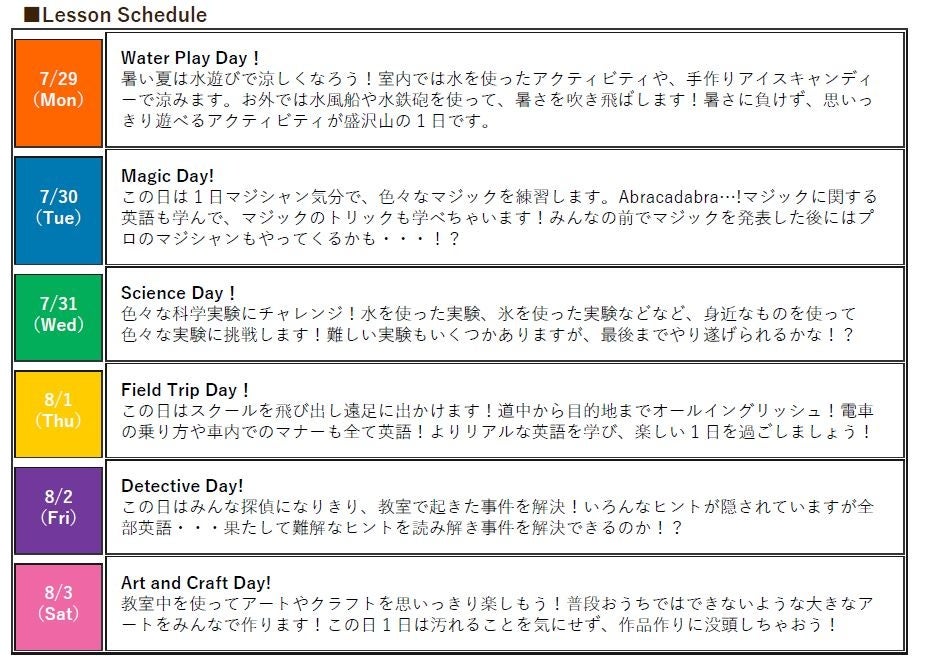 日 程:202年7月29日(月)~8月3日(土) ※1日単位の申し込みも可能です。
