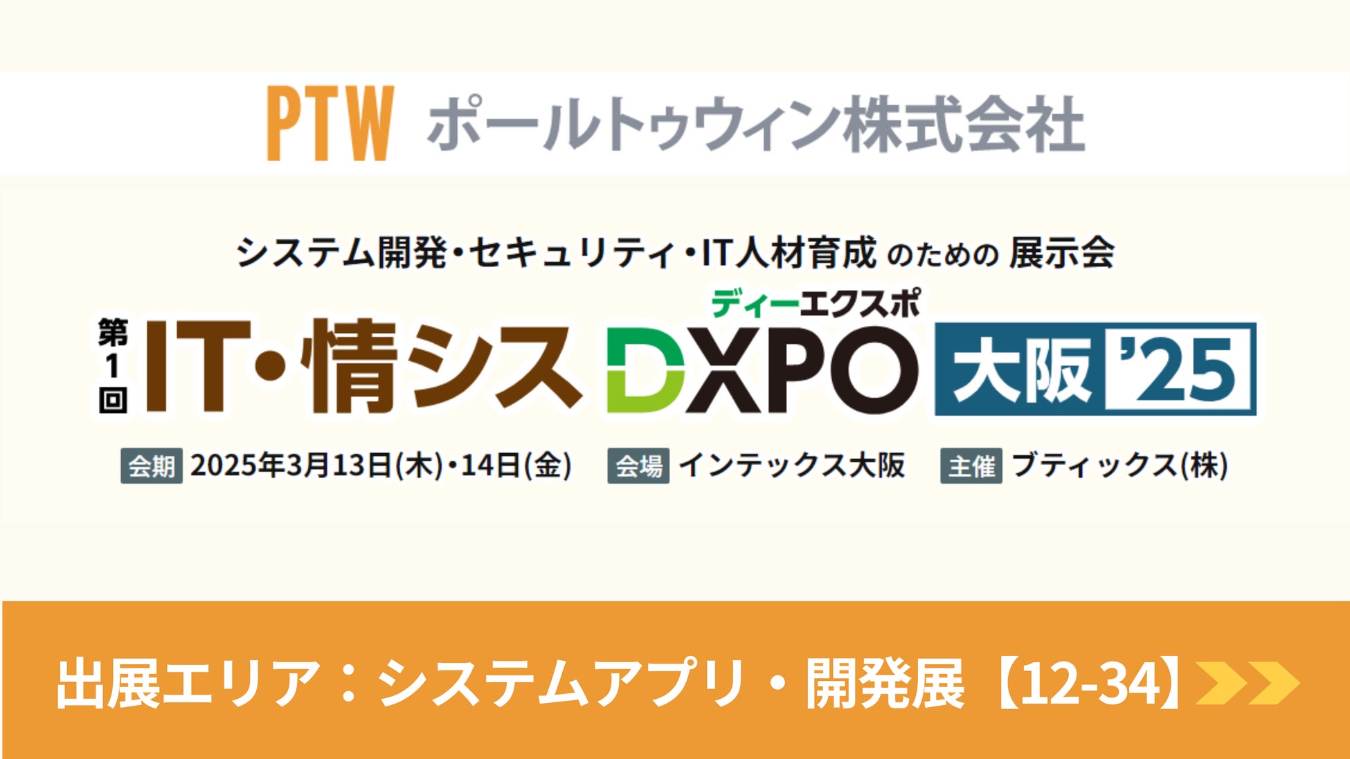 サービス・ライフサイクルの課題解決を支援するポールトゥウィン株式会社(本社:愛知県名古屋市、代表取締役 CEO:橘 鉄平、代表取締役COO:志村 和昭、以下「ポールトゥウィン」)は、2025年3月13日(木)、14日(金)にインテックス大阪で開催される「第1回IT・情シスDXPO大阪'25」に出展いたします。