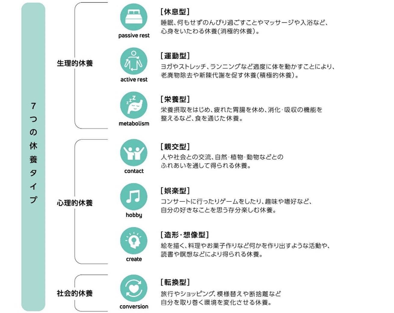 今話題の「休養学」から7つの休養タイプを解析 娯楽、親交タイプの実施率が上昇、休養は多角化傾向に