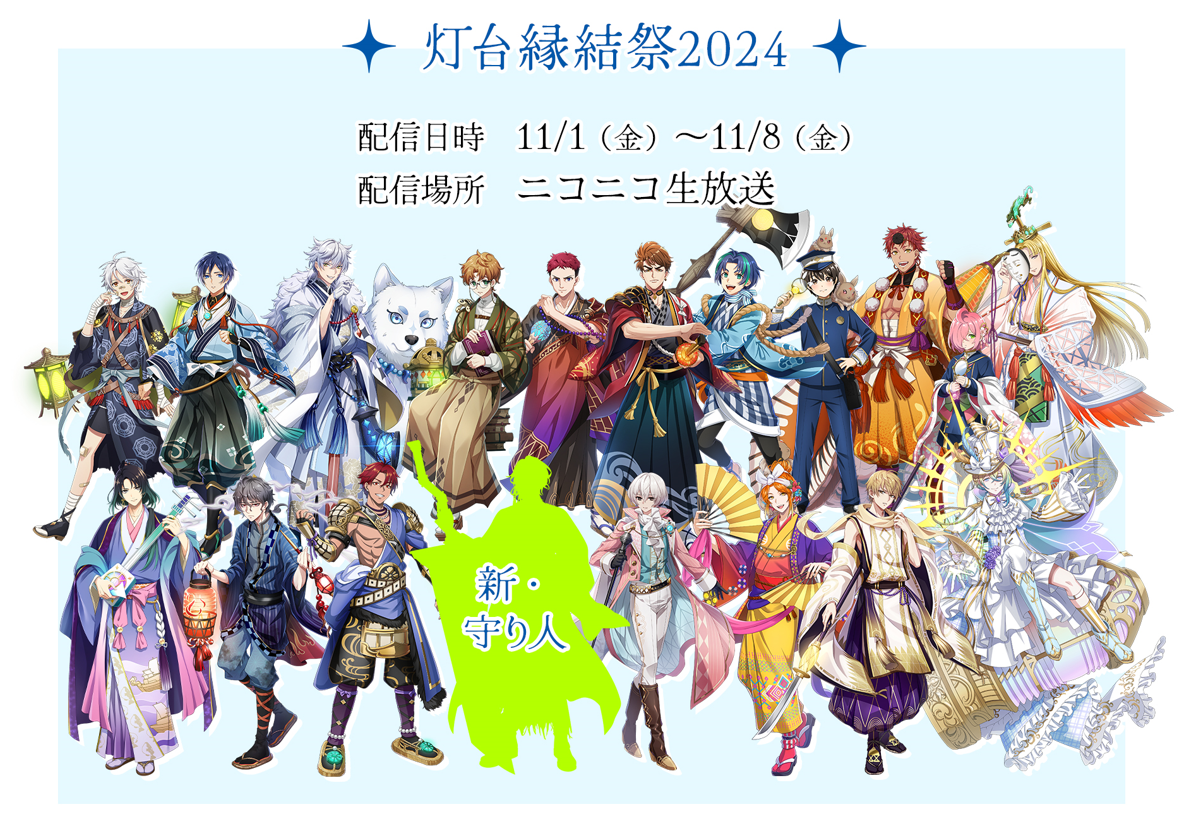 応援上映会「灯台縁結祭(とうだいえんむすびまつり)2024」では、これまでお届けしたボイスドラマ「幻想夜話」や「逆光」から厳選した作品を連日、配信します。さらに、最終日には完全新作となる待望の第53弾「???灯台(CV:????)」 を初公開!