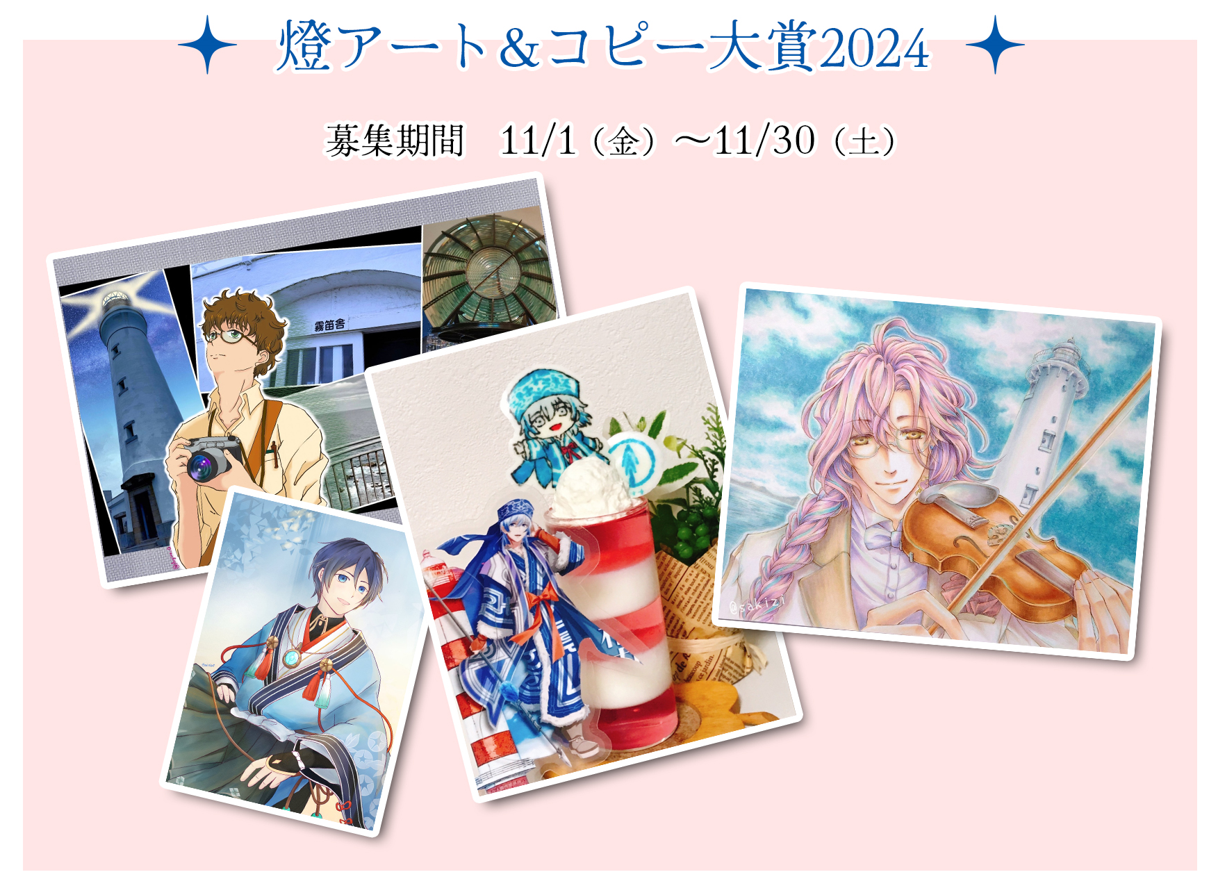 灯台擬人化プロジェクト『燈の守り人』は11/1(金)~11/8(金)に開催される「海と灯台ウィーク2024」(主催:海洋文化創造フォーラム、共催:日本財団 海と灯台プロジェクト、海上保安庁)と連携し、配信イベント「灯台縁結祭2024」や展示イベント「燈の守り人展2024」、地域コラボ「アニバーサリー灯台2024」、さらにコンペティション「燈アート&コピー大賞2024」を実施いたします。