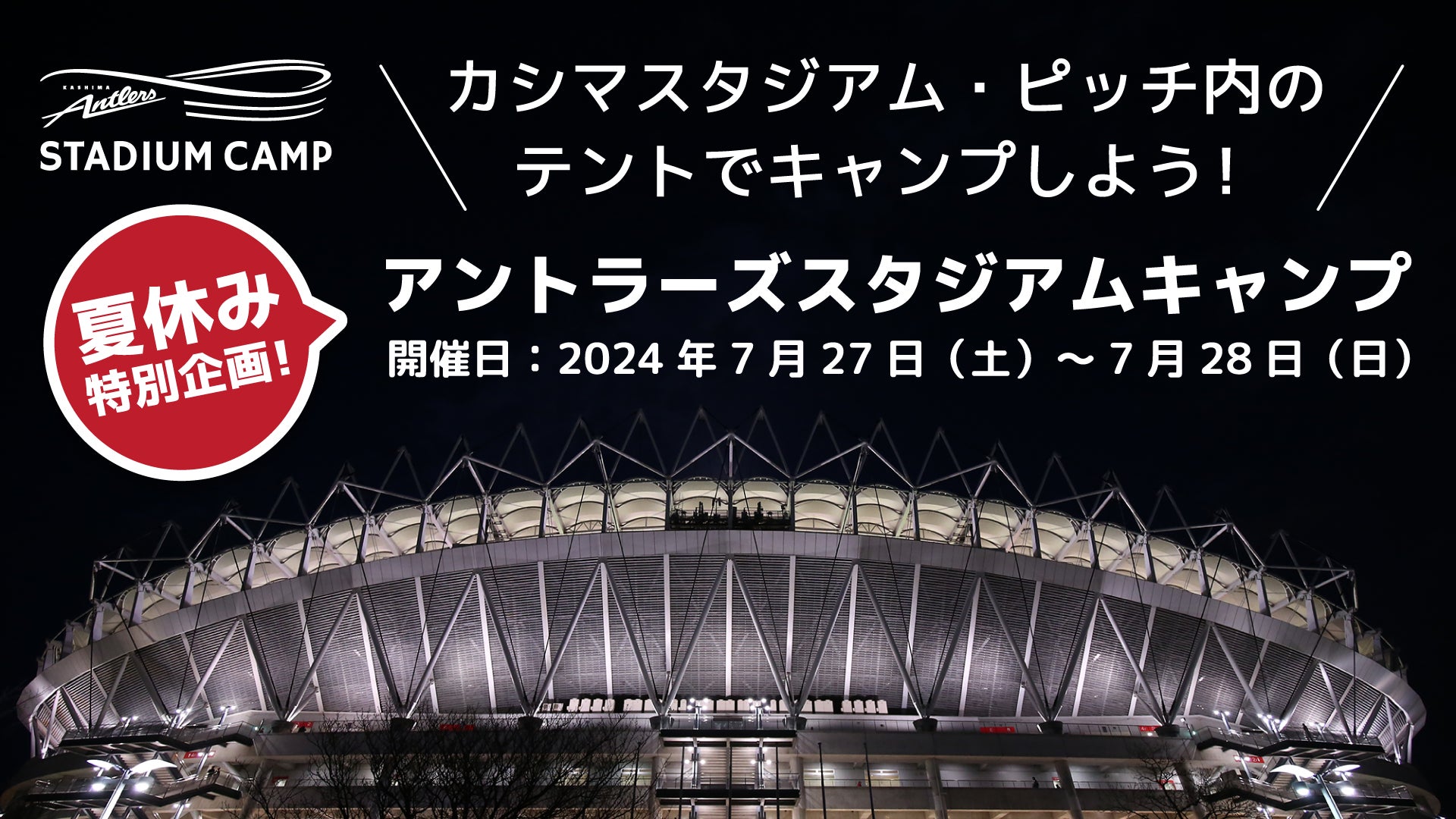 7月27日(土)から28日(日)にかけて、県立カシマサッカースタジアムで「アントラーズスタジアムキャンプ2024」の開催が決定!夏の思い出に家族や仲間と一緒に、スタジアムキャンプを過ごしてみませんか。