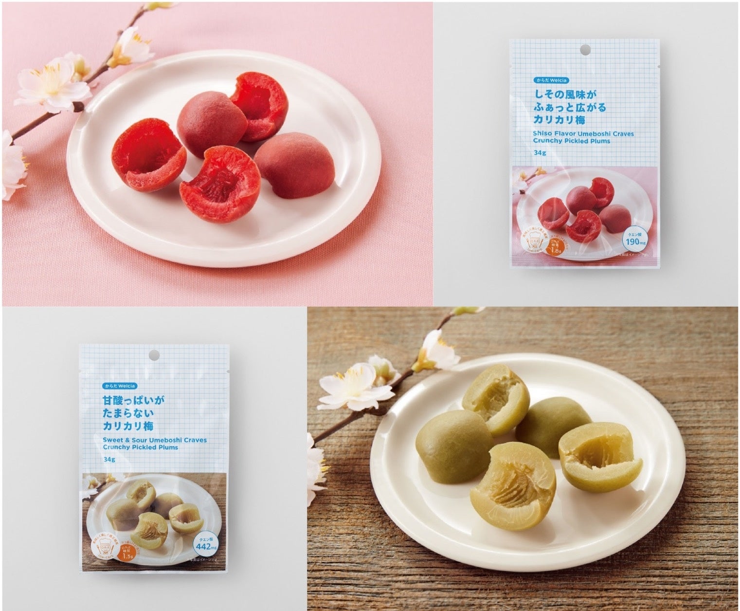 この度、カリカリとした食感が楽しい「甘酸っぱいがたまらないカリカリ梅」「しその風味がふぁっと広がるカリカリ梅」をシリーズ第10弾としてラインナップに追加いたしました。