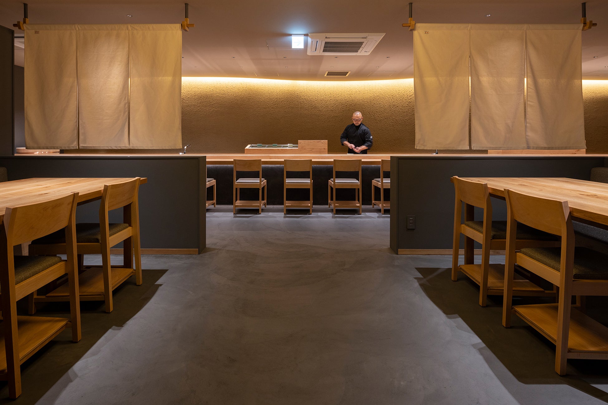 店内にはずらりと18席が並ぶ圧巻のカウンター席を中心に、テーブル席や個室も備え、銀座でのカジュアルな接待やデート、同僚や友人、家族とのお食事など、さまざまなシーンでご利用いただけます。