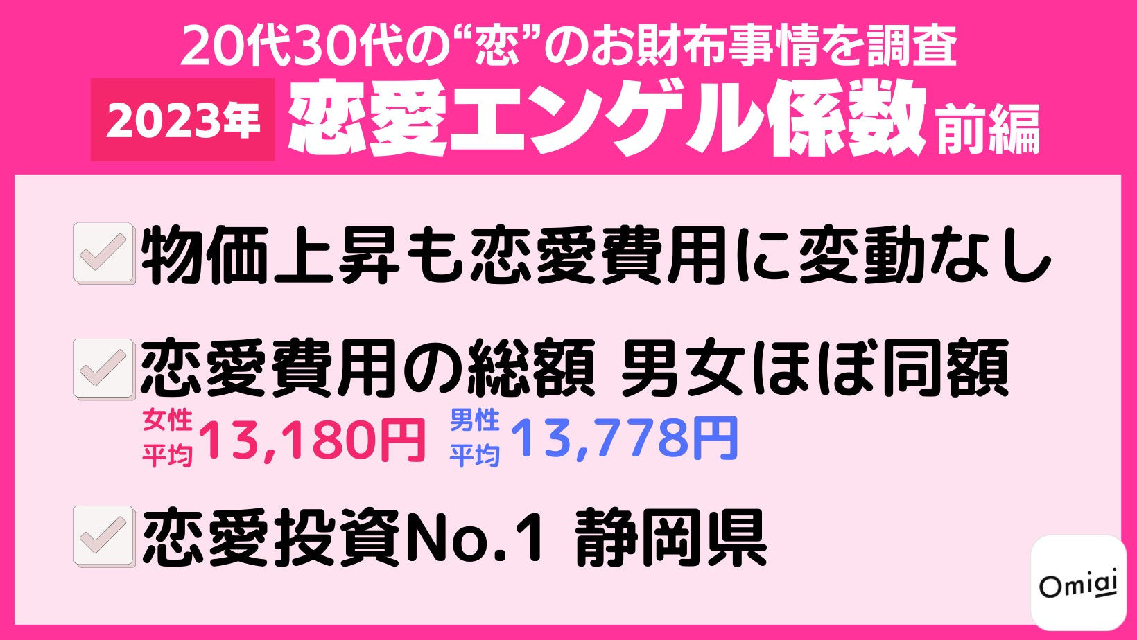 Omiai Report light 『2023年版 恋愛エンゲル係数(前編)』 “恋”のお財布事情を都道府県別ランキングで発表
