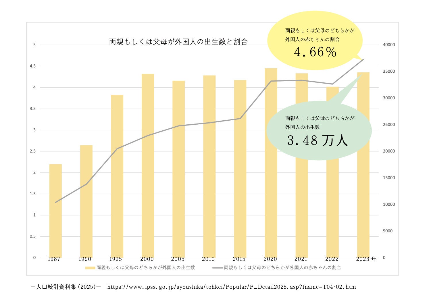 ※2 国立社会保障・人口問題研究所 人口統計資料集(2025) 父母の国籍別出生数 https://www.ipss.go.jp/syoushika/tohkei/Popular/P_Detail2025.asp?fname=T04-02.htm