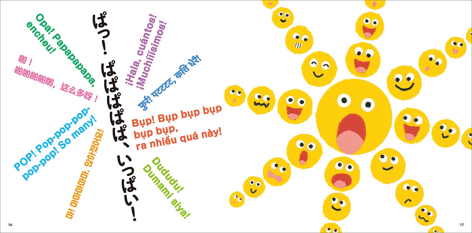 また各国語の翻訳は、多文化共生への取り組みや絵本の造詣が深い一流の翻訳者に担当をしてもらいました。それぞれの言葉での擬音の表現などを比べてみても面白いでしょう。