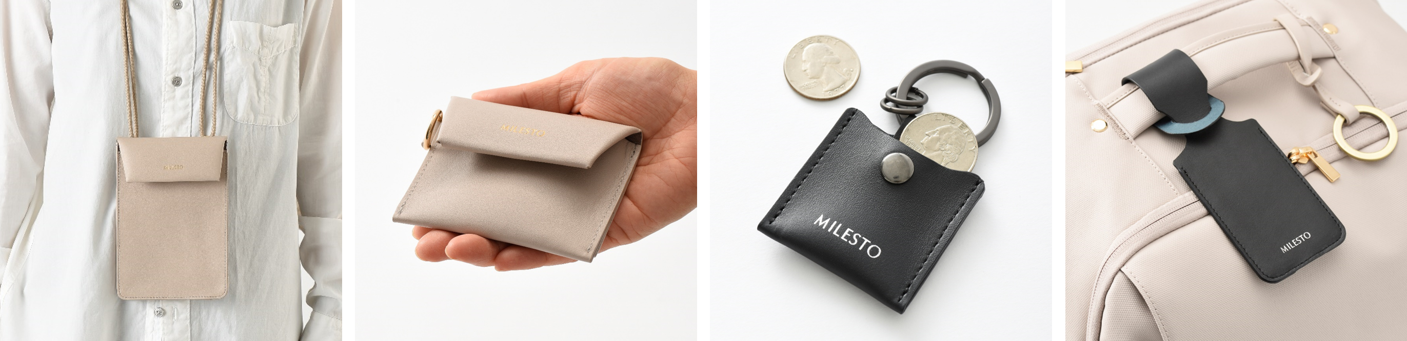 スマホショルダー、ミニマルポーチ、コインキーリング、ラゲージタグの革小物が新登場!