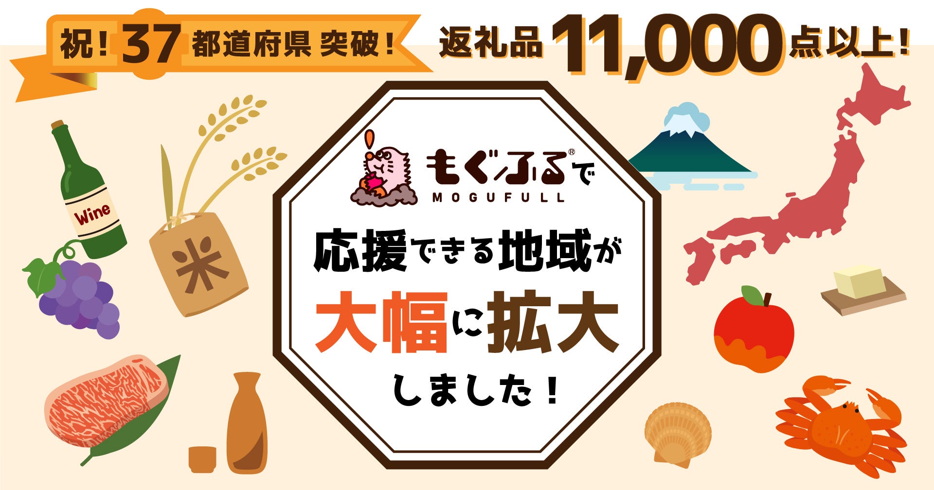 この度、両社の地域活性化に向けた取り組みの⼀環として、ふるさと納税を中⼼とした連携を⾏います。これにより、「もぐふる」を通して応援できる自治体数は70以上(37都道府県)、返礼品数は11,000点以上※1となり、寄附者にとって選択肢が大幅に拡大します。