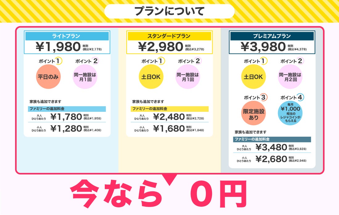 【内容】キャンペーン期間中に新規会員登録した方に限り、会員登録時にお支払いいただく初月会費と、キャンペーン期間中のファミリー追加登録費用が全て無料。