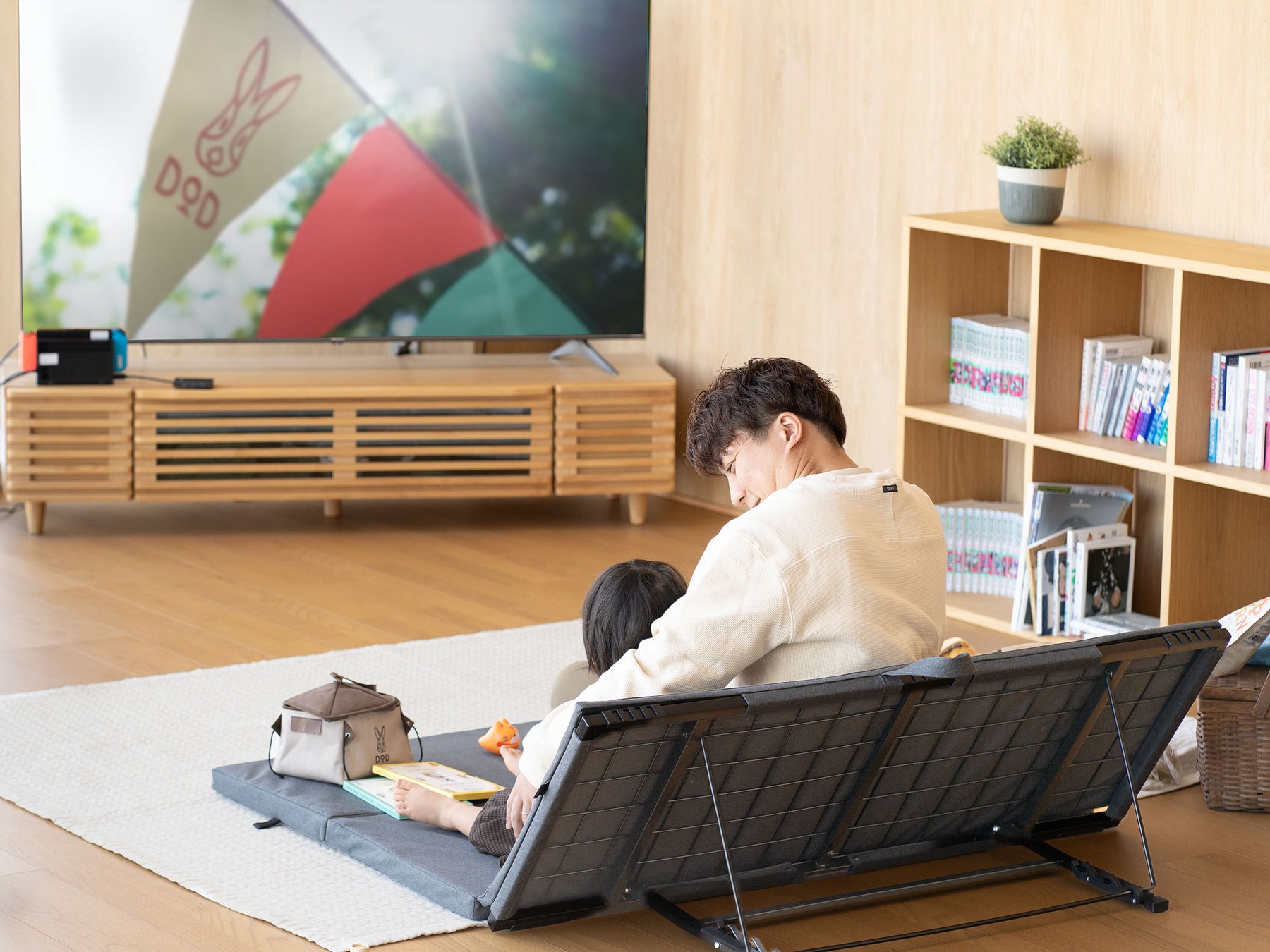 キャンプでは“お座敷スタイル”として、チェア分の荷物を減らしたいシーンや小さいお子さまも安心して過ごせる空間を作りたいシーンで人気が高まっています。