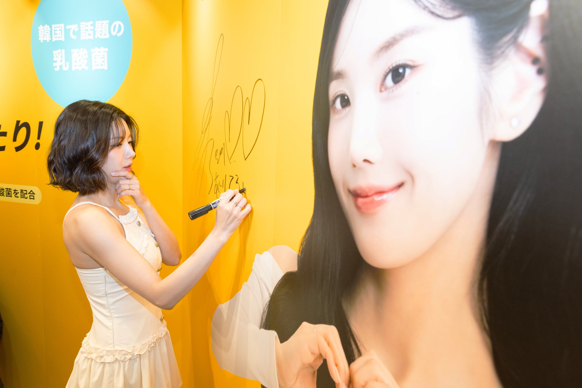 クォン・ウンビさんはポップアップを訪れ、イベントブースを体験した後、フォトボードにサインを残しました。
