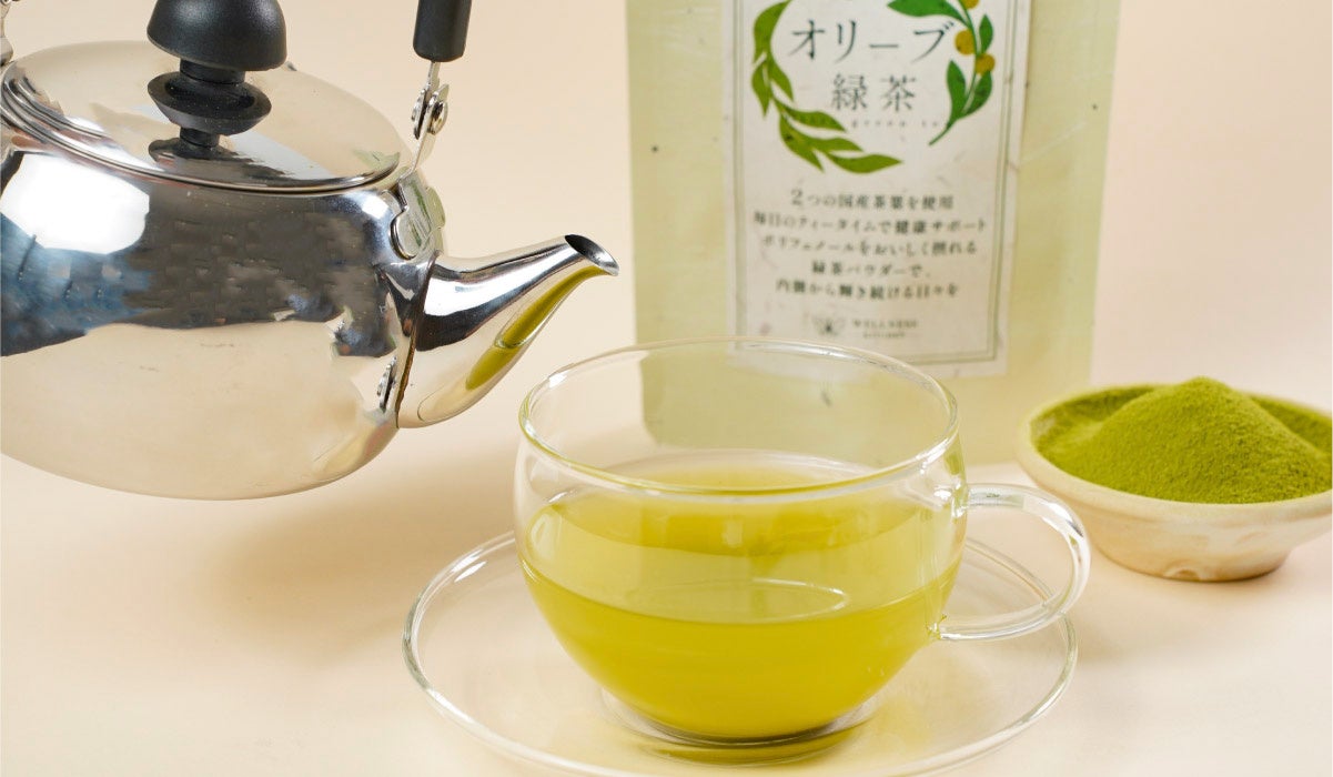 シニア世代のポリフェノール習慣の背中を押すために開発されたのが、「オリーブ緑茶」です。