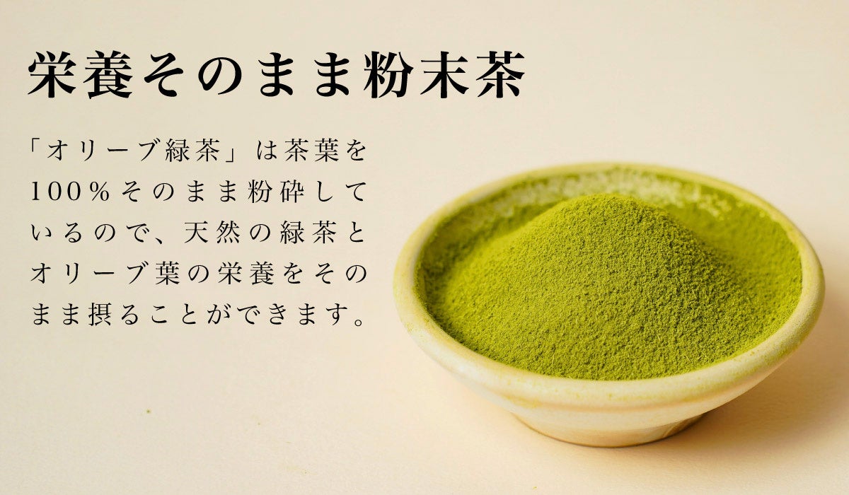 天然の緑茶とオリーブ葉の栄養をそのまま摂ることができます。