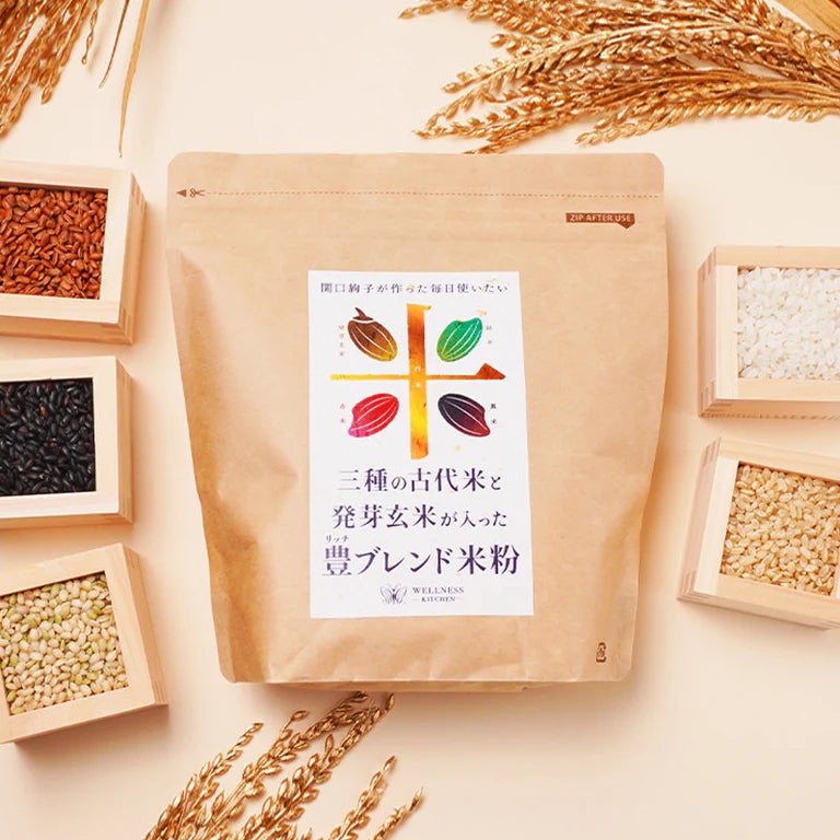 さらに第3弾商品「三種の古代米と発芽玄米が入った豊ブレンド米粉」は、