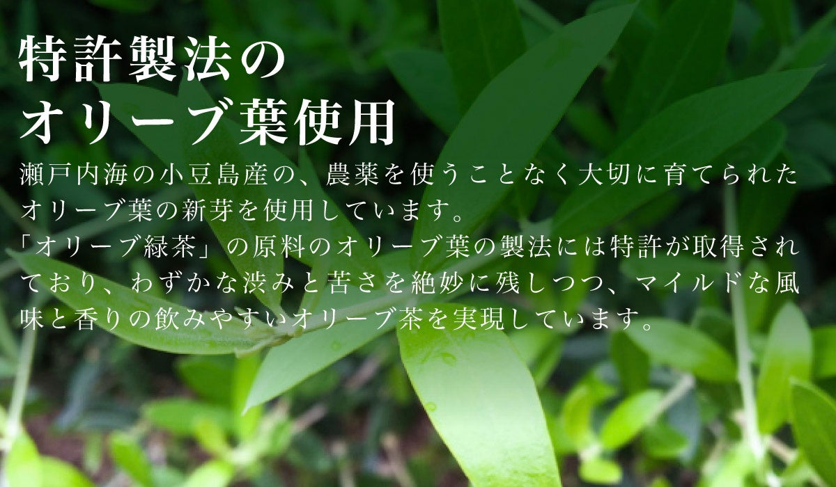 瀬戸内海の小豆島産の、農薬を使うことなく大切に育てられたオリーブ葉の新芽を使用しています。