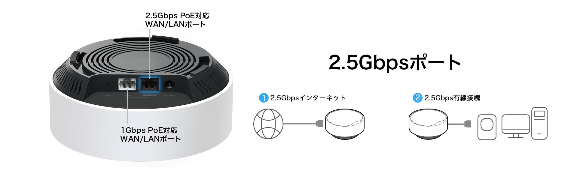 ・ 2.5Gポート搭載*3 :高速で有線接続できる2.5Gbpsポートとギガビットポートを搭載