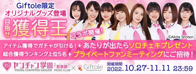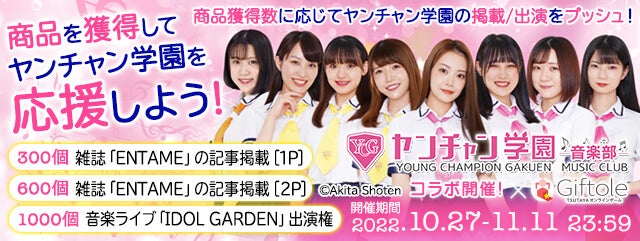期間中、ヤンチャン学園音楽部オリジナルグッズの総獲得数に応じて、ヤンチャン学園音楽部の宣伝をGiftoleがお手伝い!