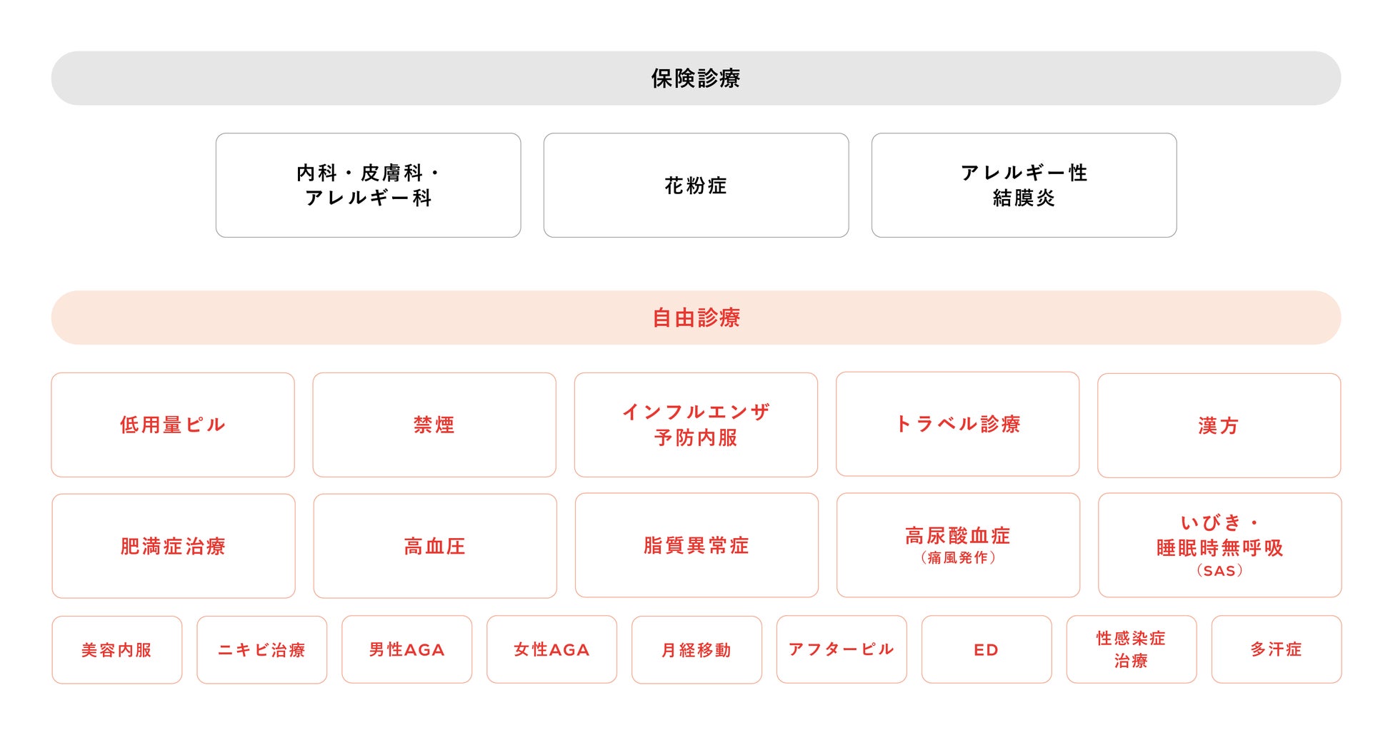 自由診療:低用量ピル/禁煙/ドライアイ/漢方/生活習慣病/インフルエンザ/SAS など