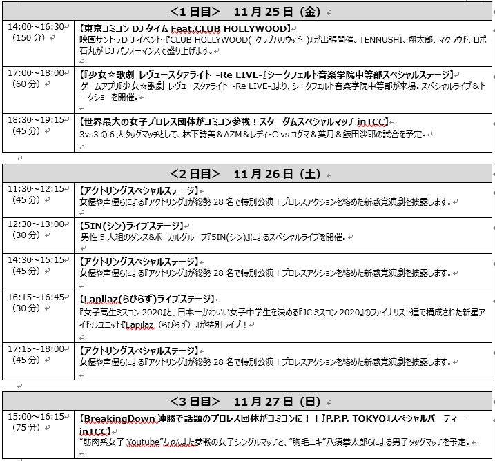 <特設リングステージスケジュール>(11月17日(木)時点)