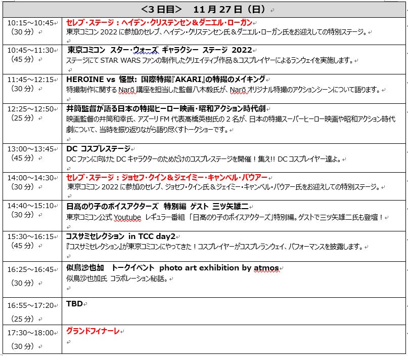 株式会社東京コミックコンベンション(代表取締役社長:胸組 光明)は、2022年11月25日(金)~11月27日(日)までの3日間、幕張メッセ(千葉市美浜区)にて開催する「東京コミックコンベンション2022」(以下、「東京コミコン2022」)の、ステージスケジュール情報に関して発表いたしました。