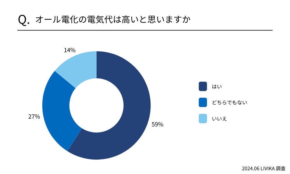 オール電化の電気代を高いと回答した方は全体の59%となりました。