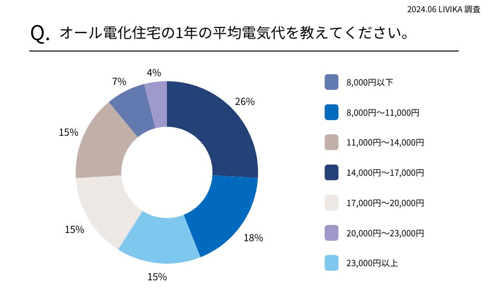 オール電化住宅の電気代平均で最も多かったのは14,000~17,000円で26%となりました。