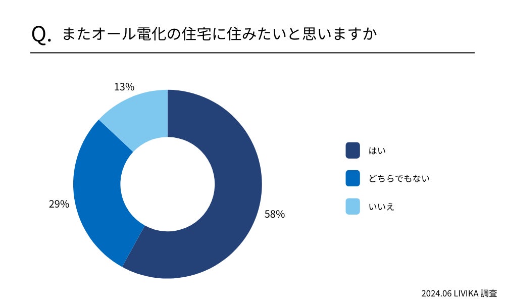 回答したうちの58%はまたオール電化住宅に住みたいと答えました。