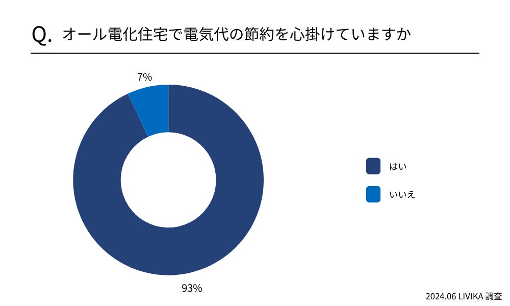 回答者の93%の方がオール電化住宅で節約を心がけていると回答しました。