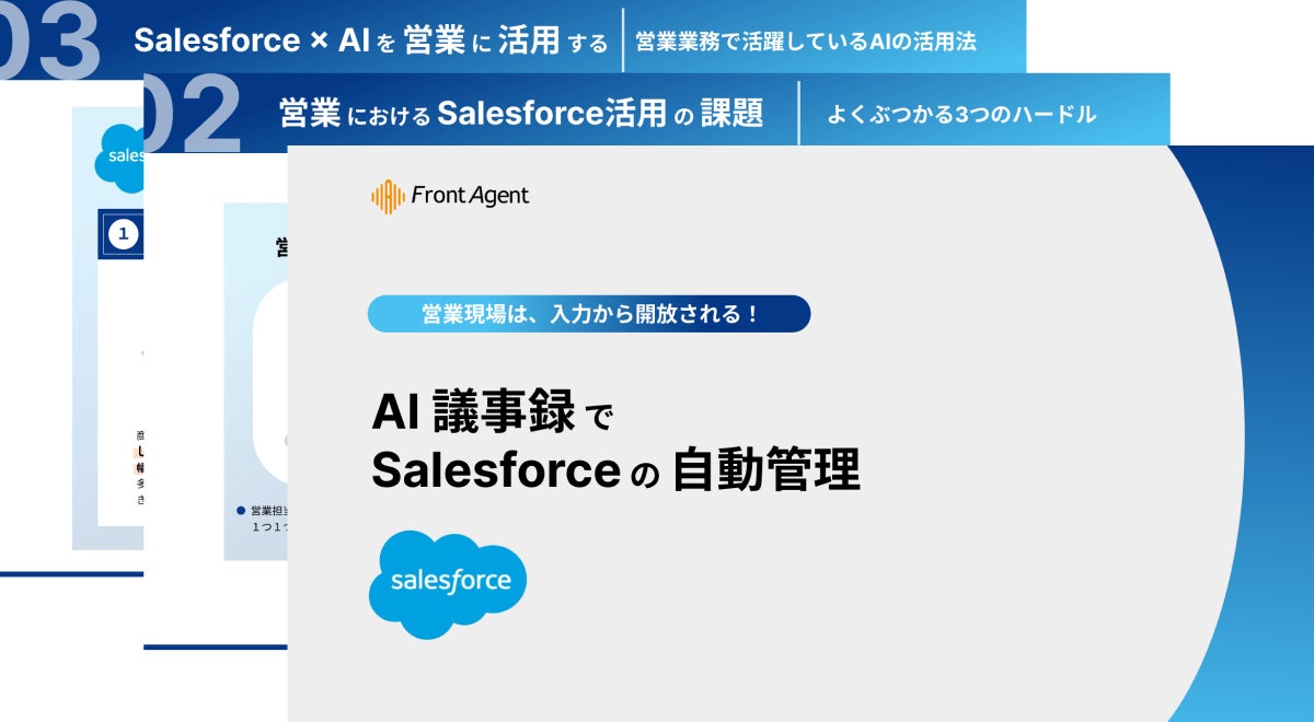Umee Technologiesは、営業組織の効率向上と業務効率化をサポートするために、AI商談アシストプラットフォーム「Front Agent®」を開発・運用しております。さまざまな法人様の営業チームへの伴走支援を通して、顧客や商談情報を【salesforce】で活用するための課題が見えてきました。これらの課題を克服し、営業全体の生産性向上を促進するために、「AI議事録でsalesforceの自動管理」を制作いたしました。