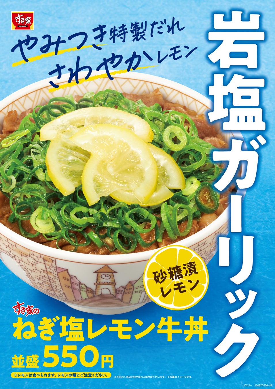株式会社すき家(代表取締役社長:笹川 直樹 本社:東京都港区)が展開する牛丼チェーン店「すき家」では、8月17日(水)AM9:00より、「ねぎ塩レモン牛丼」を販売します。