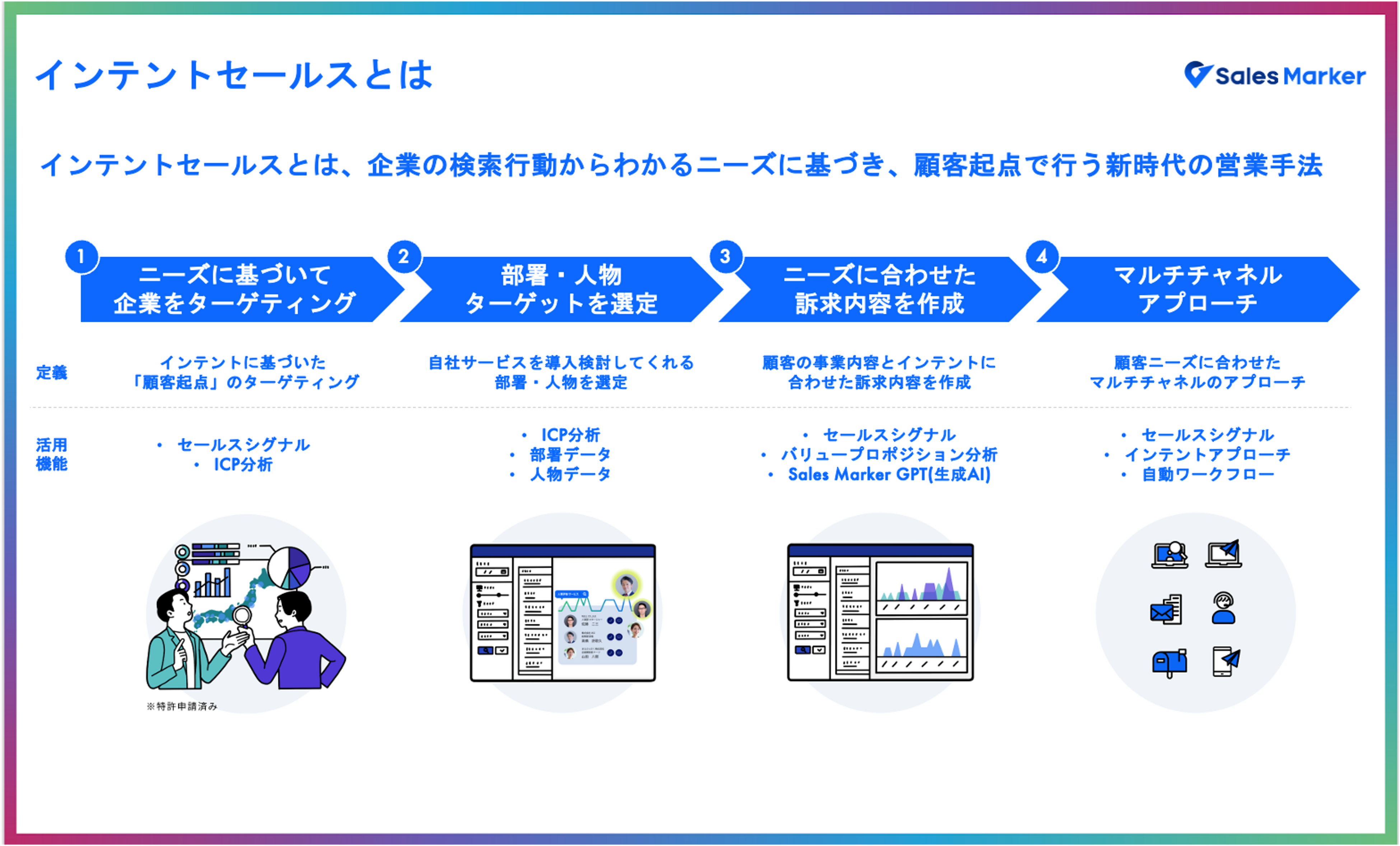 ※2:約500万件の企業データベースとインテント(興味関心)の組み合わせでニーズが顕在化している企業を見つけて、マルチチャネルでの多角的なアプローチを行うセールスの新しい手法