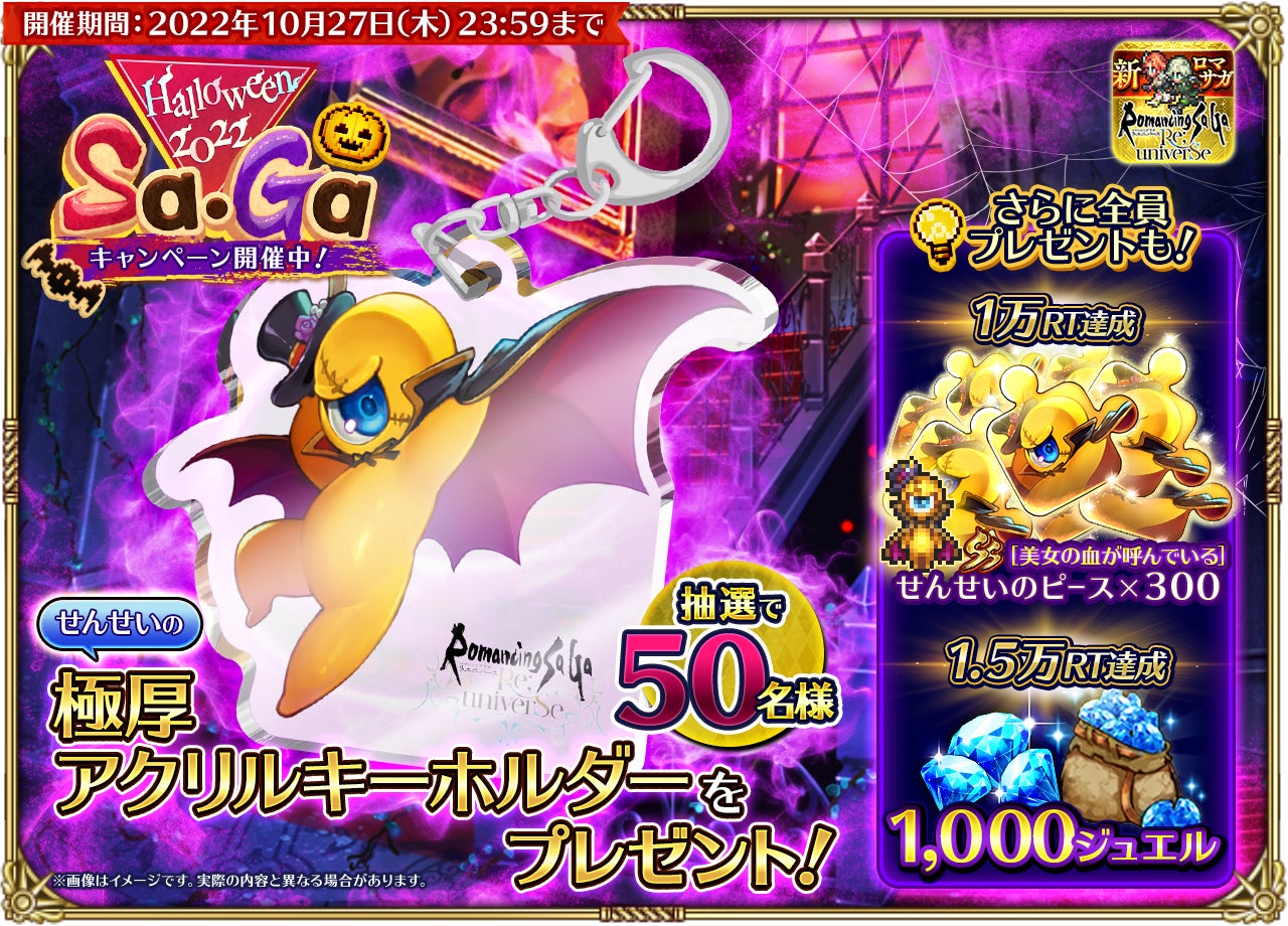 株式会社アカツキゲームス(本社:東京都品川区、代表取締役:戸塚佑貴、株式会社アカツキ100%子会社)は、株式会社スクウェア・エニックス(本社:東京都新宿区、代表取締役社長:松田洋祐、以下「スクウェア・エニックス」)から好評配信中の「ロマンシング サガ リ・ユニバース」において、2022年10月21日(金) より「Halloween2022 Sa・Ga」を開催することをお知らせいたします。