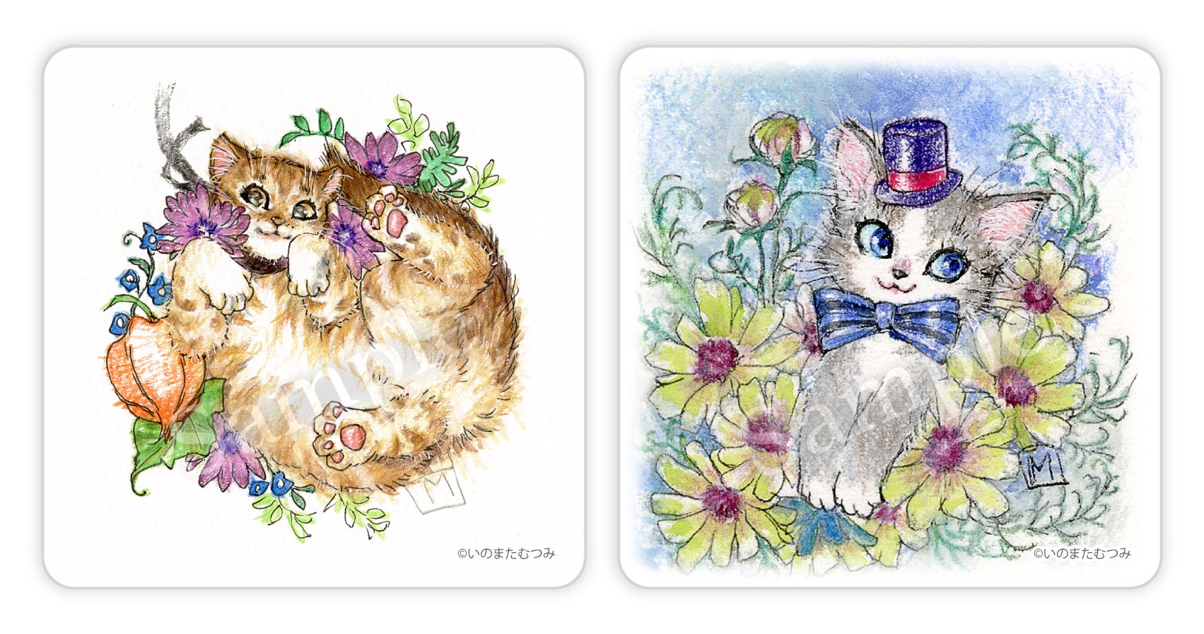 X(旧Twitter)と Instagramで展示会開催を記念して、いのまたむつみオリジナル アクリルチャーム2種セットを合計4名様にプレゼント!