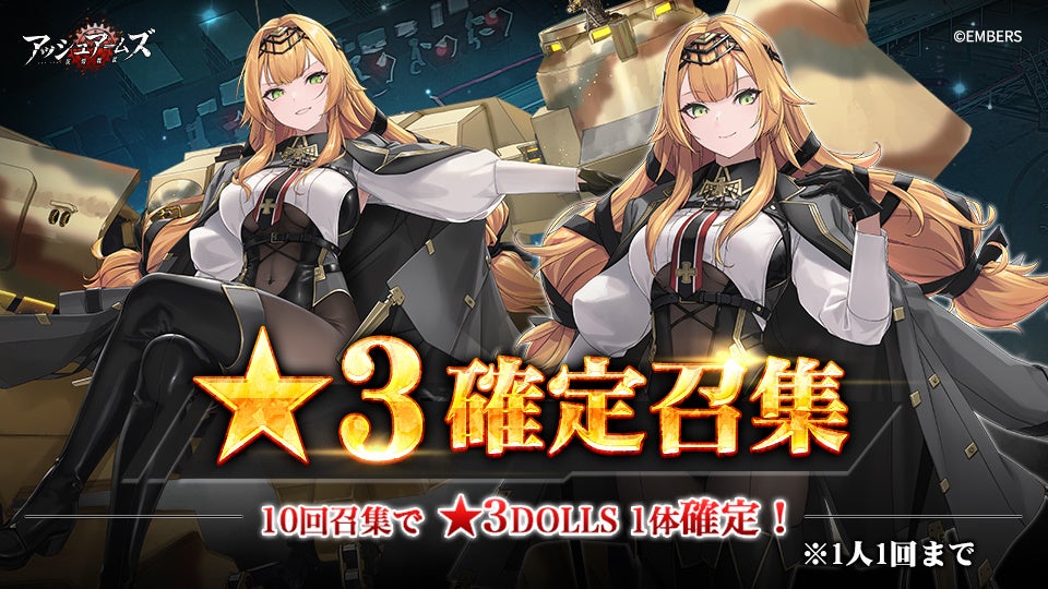 有料結晶石限定で10回の召集を行い、そのうち☆3 DOLLSが1体以上確定で出現します。