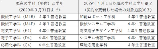 ※3:神戸高専のネーミングライツには、パートナーが契約期間の更新を希望する場合、その理由を付して契約期間の末日の6ヶ月前までにその旨を神戸高専に通知することにより、優先的に契約交渉を行うことができる権利が付与されています。契約を更新した場合の2029年4月以降に対象となる学科と学年は上記のとおりです。