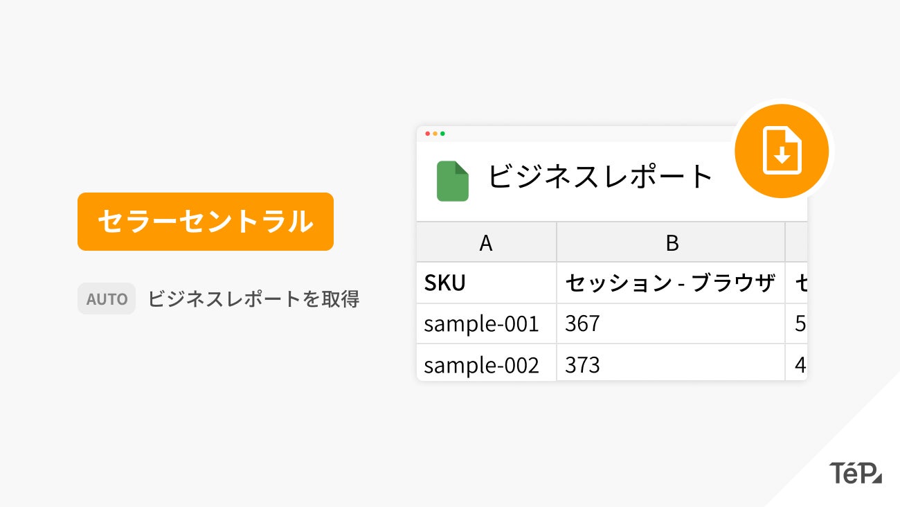 この度、セラーセントラルの「ビジネスレポート」を自動で取得し、TēPs が接続している他のサービスに連携できるようになりました。