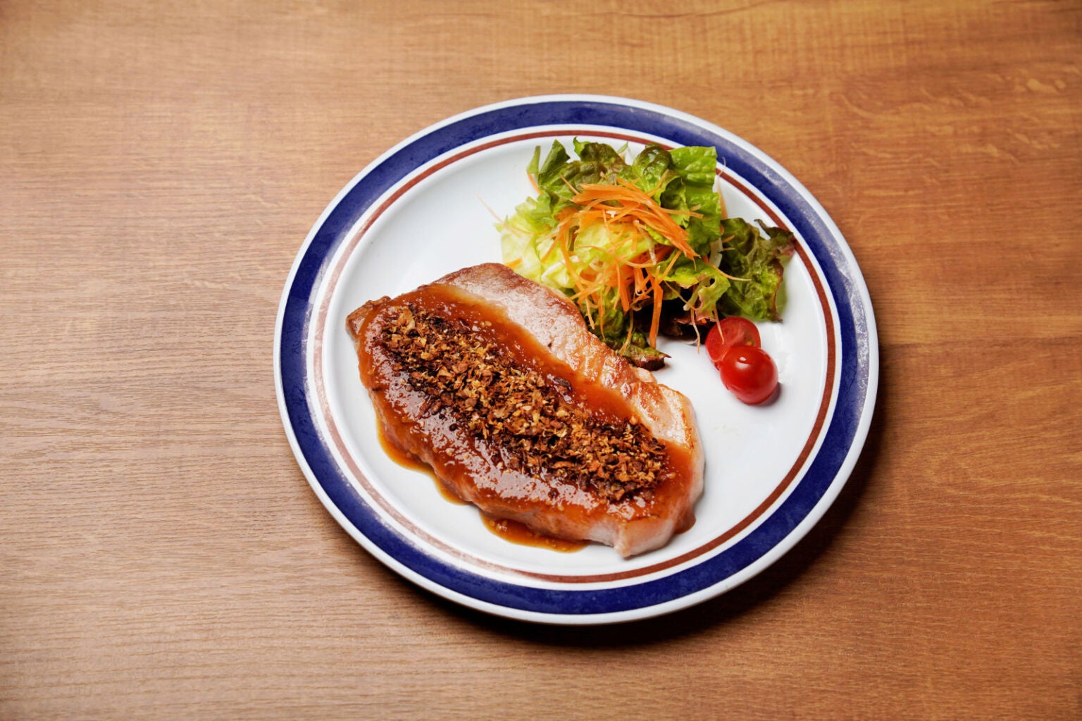 香ばしくグリルした豚肩ロースに、「タマネギぐるりこ」をベースに仕上げた特製の和風シャリアピンソースをたっぷりとかけた一品です。