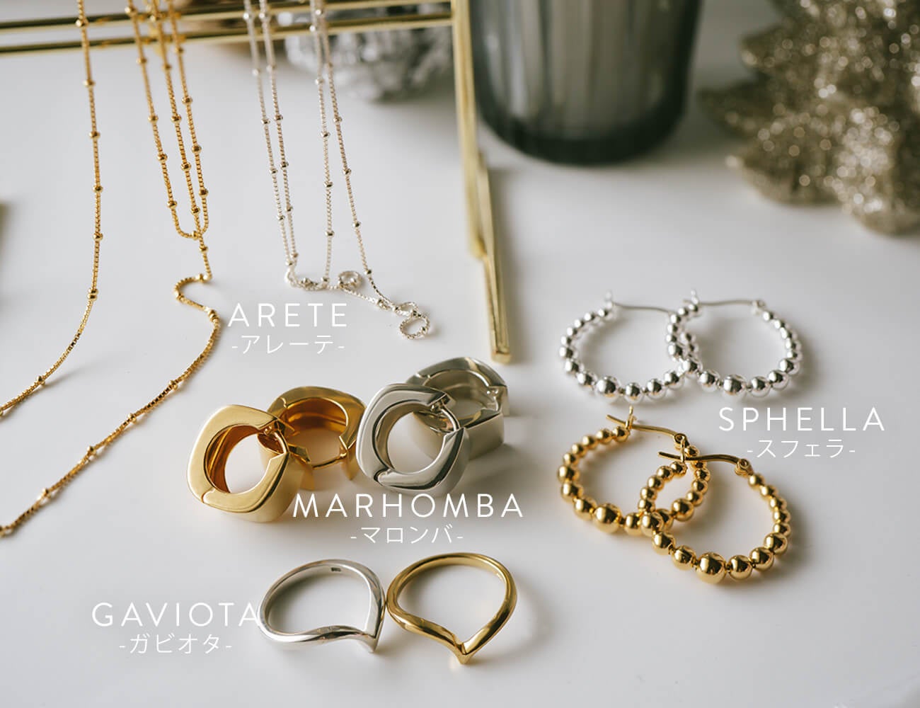 をコンセプトに、シンプルながらもデザイン性のある、アクセサリー&ジュエリーをお届けします。
