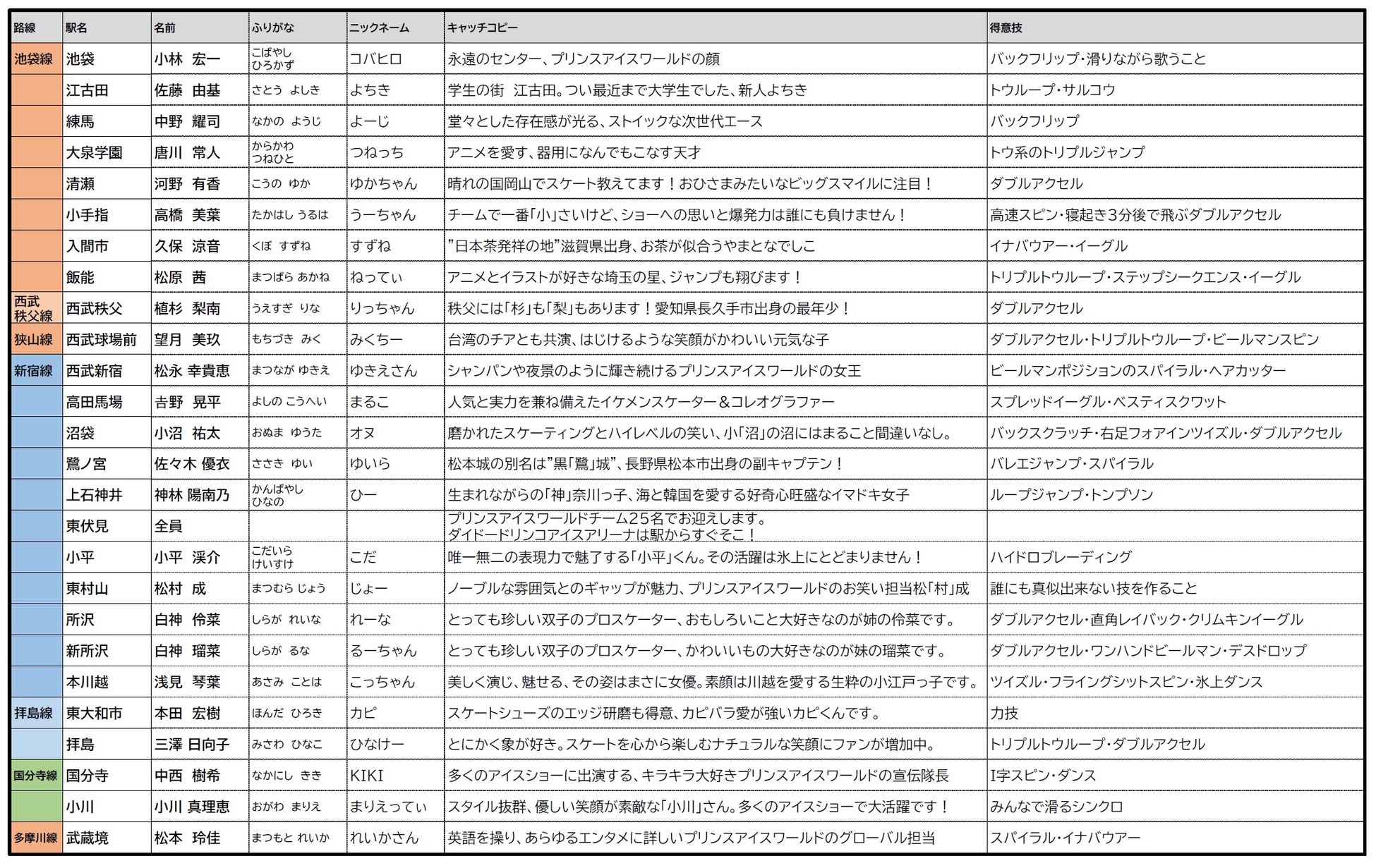 3.内 容 2024年度プリンスアイスワールドチームメンバー25名を、名前、メンバーや駅のイメージなどから「駅の推しプリンスアイスワールド」に各駅ひとり選定し、応援を行っていきます。※東伏見駅はチーム全員が対象になります。