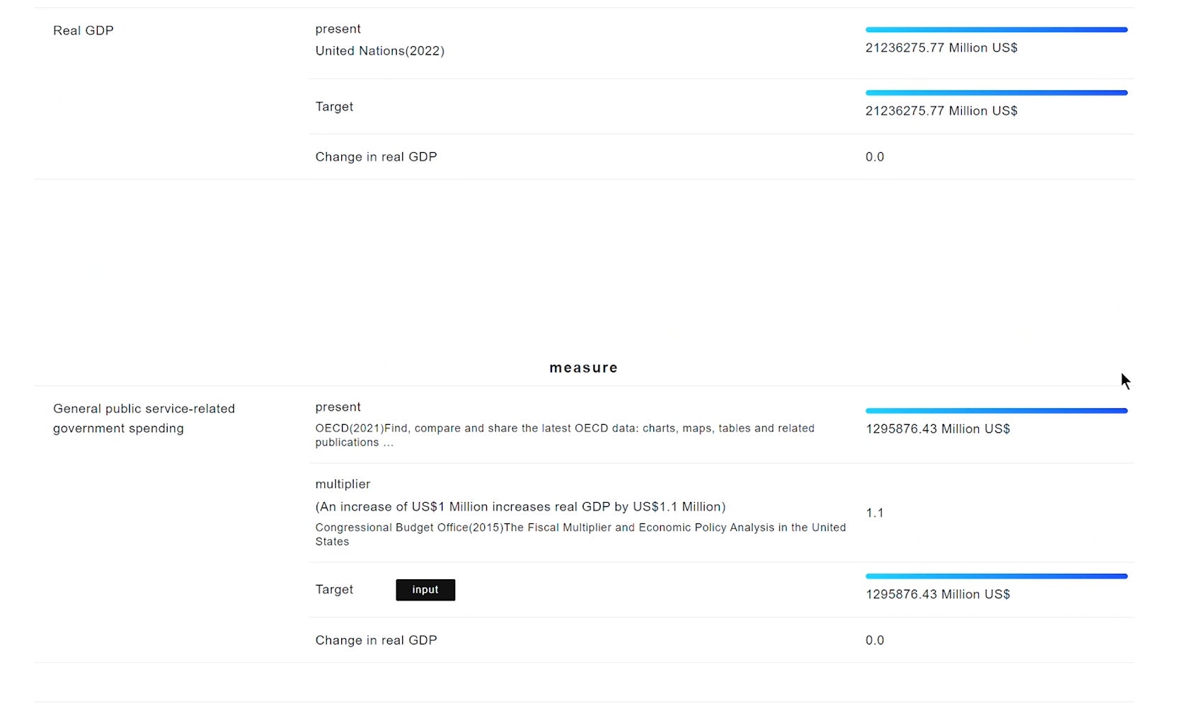 各国の経済成長などの目的達成のために必要な政策とその客観的効果がわかるecosisを無料公開します。各政策(公共投資額や税率など)の数値を変更することで、目標(GDPなど)への貢献度がわかります。