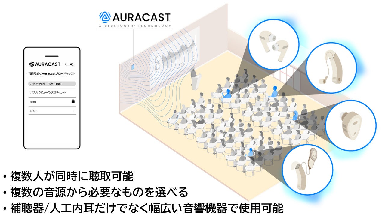 会場では「ジール」の試聴体験機会を提供し、参加メディアは次世代ワイヤレス通信「Auracast™(オーラキャスト)」を通じて同時通訳音声を聴取しました。操作はスムーズに行われ、実際に装用した記者からは「自然な装用感で違和感がない」「非常に興味深い体験だった」など、ポジティブな評価が寄せられました。