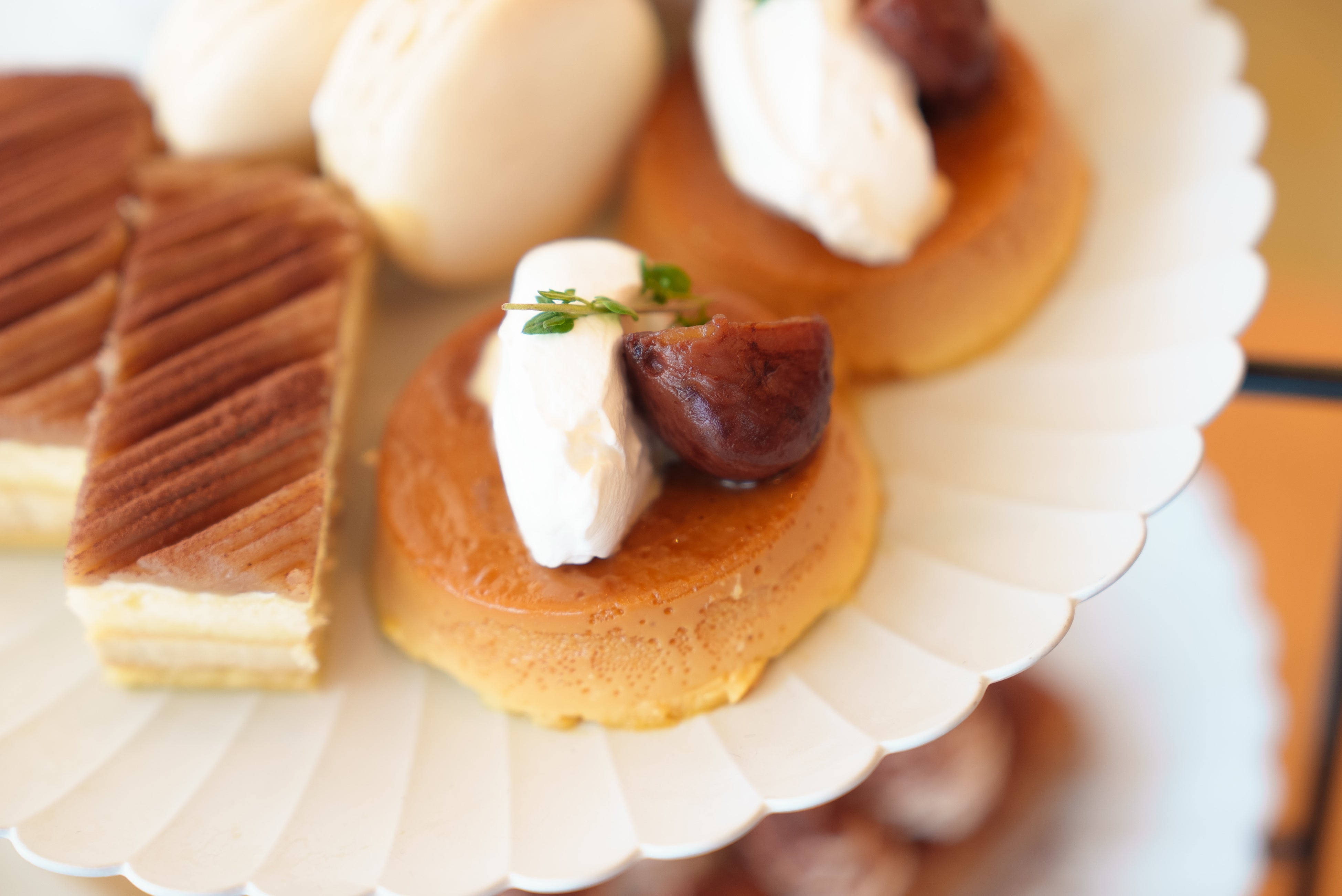 10月のアフタヌーンティーセットは、「栗」がテーマのスイーツをご用意いたしました。渋皮栗のアイス、マロンケーキ、渋皮栗の甘露煮を乗せた自家製プリンなど栗づくしのメニューに、Stong Cafe定番スイーツのバスクチーズケーキとティラミス、紅茶のシフォンケーキを組み合わせました。