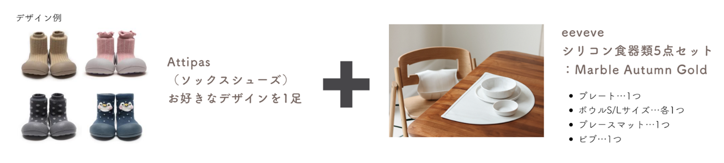 ・Attipas シューズ + eeveve シリコン食器類5点(Marble Autumn Gold)セット 10名様