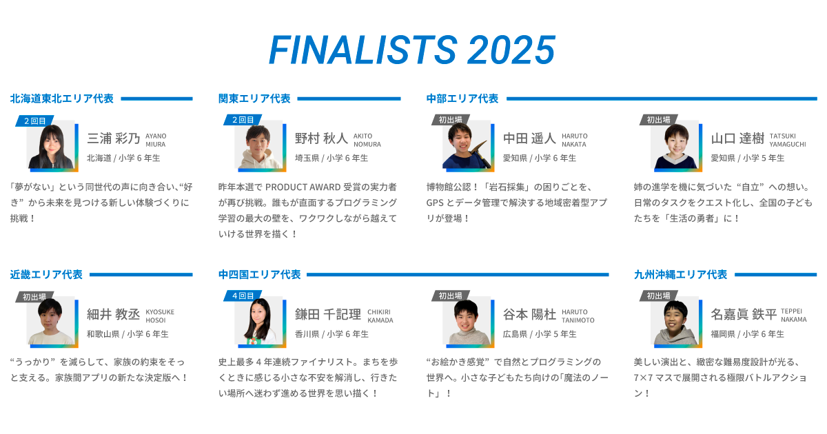◎「Tech Kids Grand Prix 2025」ファイナリスト8名について