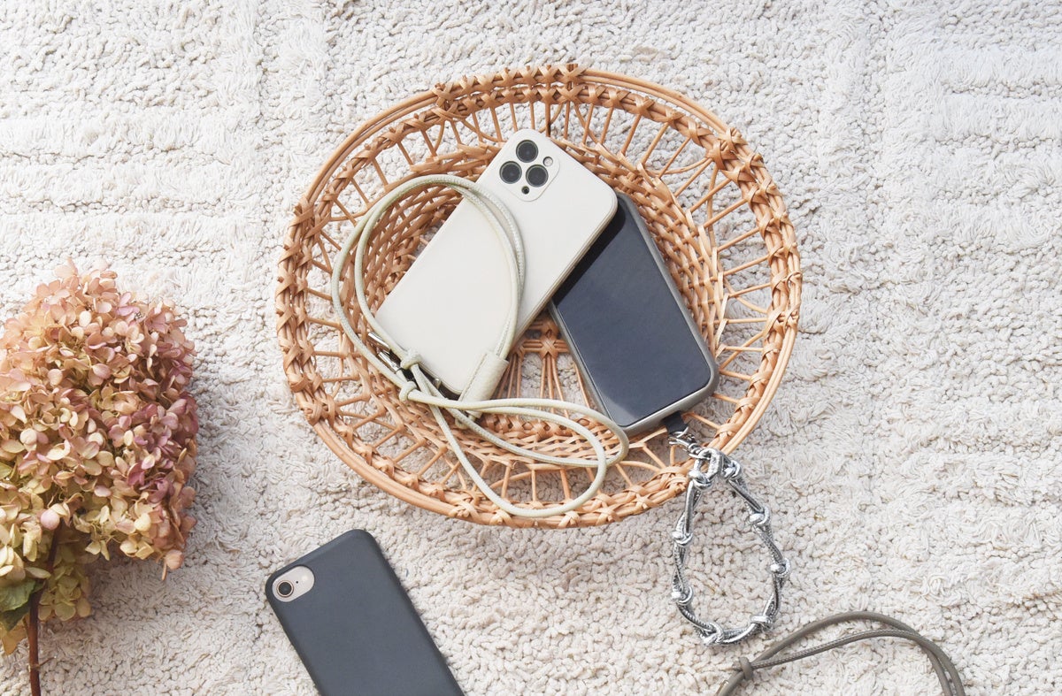 肌身はなさずスマホを持ちたい!そんな願いを叶えるショルダーストラップと手首用ストラップが2本セットになった、「Agreable(アグレアーブル)」の牛革スマホストラップ ショルダー。