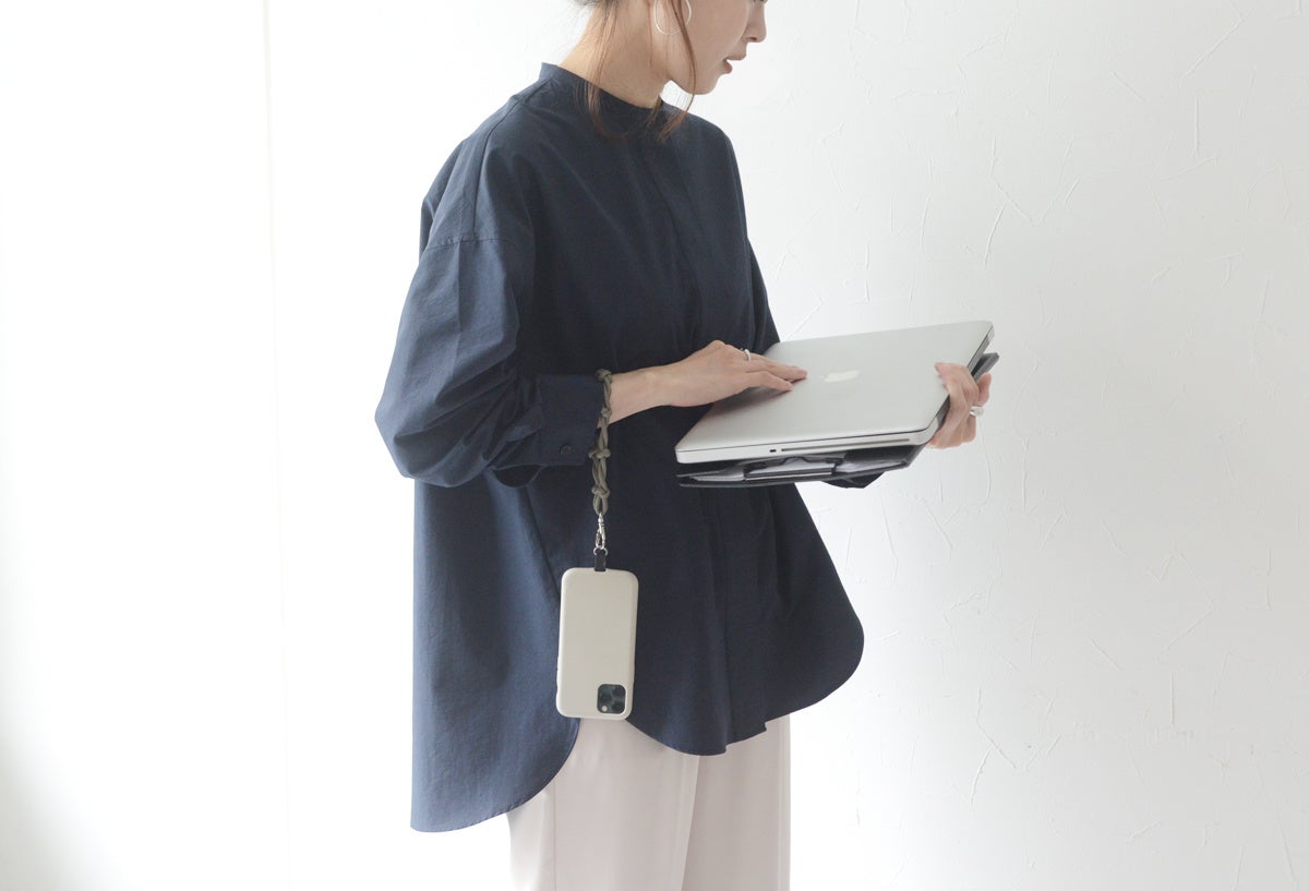 取り付けるだけで、肩や首から下げたり手首に掛けて、スマホをラクラク持ち歩き。また、スマホを手からスルッと落としてしまう「うっかり落下」も防止してくれます。
