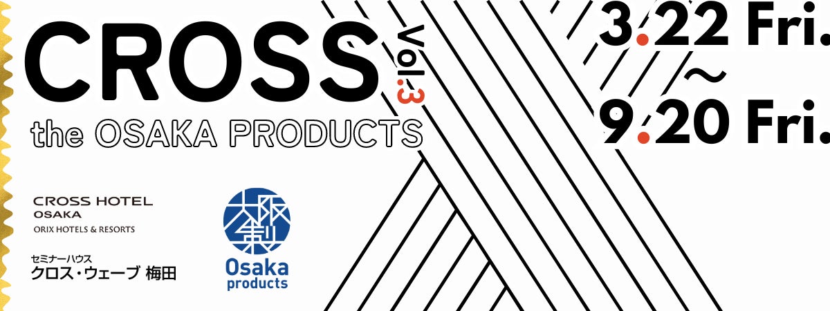 大阪府知事が認定する「大阪製ブランド認定事業※1」では、3月22日(金)から9月20日(金)の間、「クロスホテル大阪(大阪市中央区)※2」と宿泊型研修施設である「セミナーハウス クロス・ウェーブ梅田(大阪市北区)※3」にて3回目のコラボとなる展示イベント「CROSS the OSAKA PRODUCTS Vol.3」を開催します。
