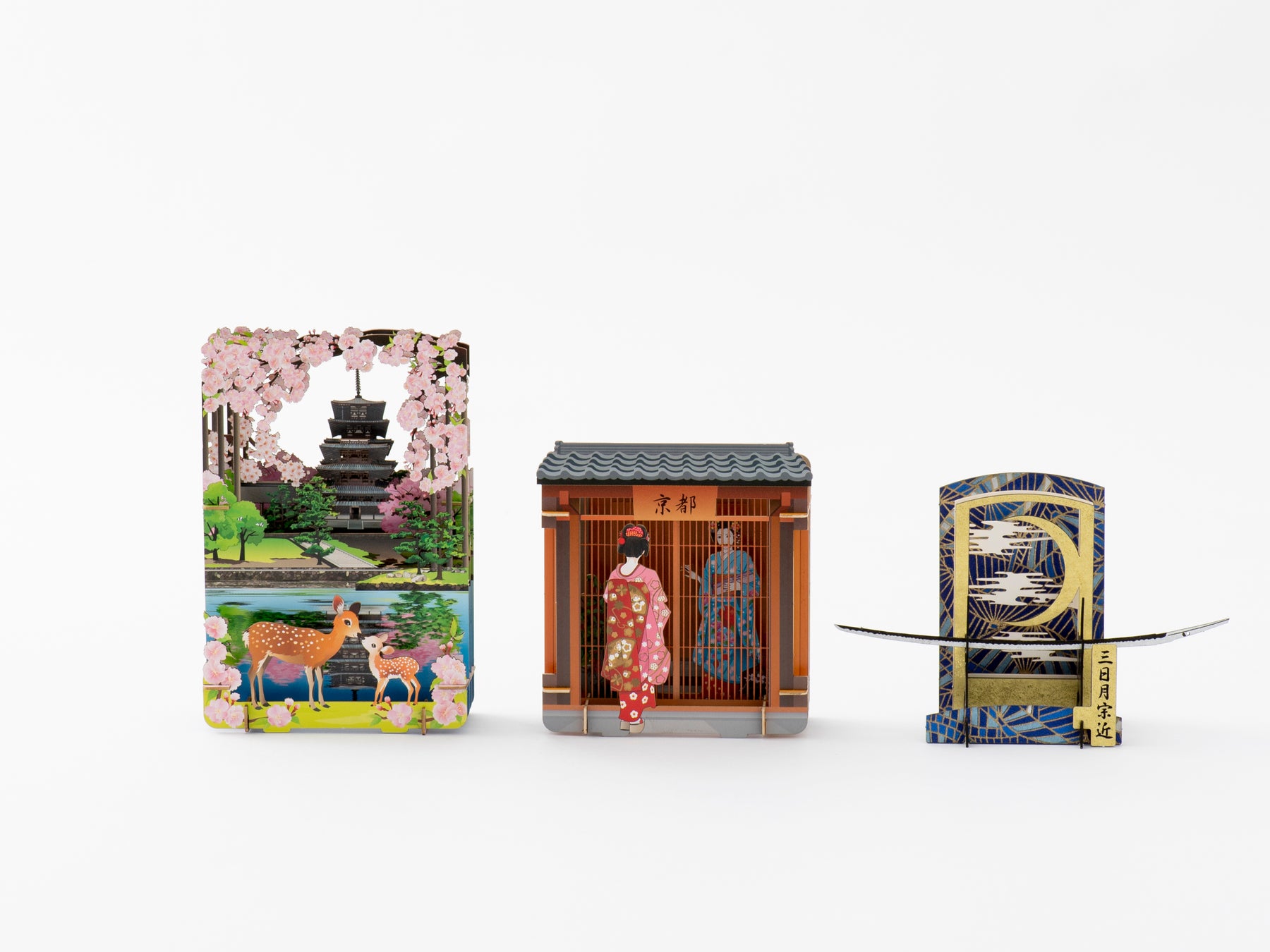 日本のさまざまな景勝地、伝統的な風情の絵を3~4層に分割して奥行を持たせ、立体的に表現した【3D立体ペーパー 切絵シリーズ】