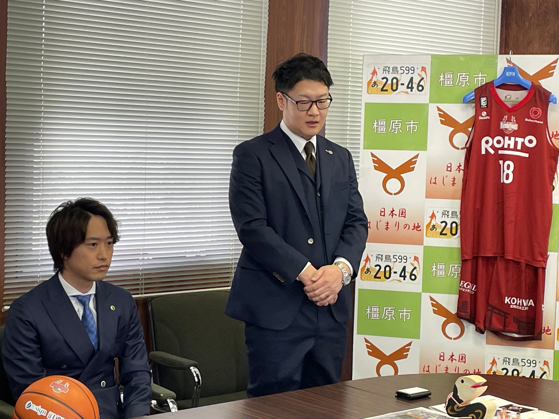 2月28日には、橿原市役所にてバスケットボール贈呈式が行われ、株式会社signの吉尾遼哉 代表取締役社長から亀田忠彦 橿原市長へバスケットボールが贈呈されました。